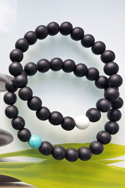 On a ona. Materiál: onyx, howlit, tyrkenit, velikost korálků